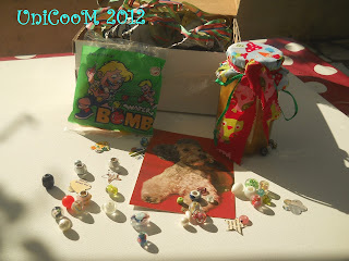 aufrupfen....vom Stuhl kippen....sorgsam eingewickelt,mit viel Heissassa-Helau-holladriHo-Luftschlangen dekoriert,nebst Tütchen Wasserbomben (ooooh darauf freu ich mich ganz besonders.....ich weiß auch schon,WEN´s trifft) ...ausgestanzten Papierblümels und allerherzensguter,bewegender Pudelkarte....über und über eingestreut mit wunderwunderschönen Millefiori-Perlen und Glitzerkügelchen.....mittendrin ein liebevoll stoffbezogenes Glas selbstgerührter Mirabellenmarmelade aus hoheitlichem Hause....